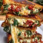 A gourmet twist on the classic grilled cheese sandwich featuring tangy sun-dried tomatoes, fresh spinach, and creamy ricotta cheese mixture on sourdough bread.
