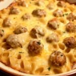 This comforting dish combines savory meatballs with a rich, creamy sauce over tender egg noodles for a truly satisfying meal.