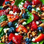 Context: This Sweet & Savory Strawberry Spinach Salad comes together in under 30 minutes, making it about 40% faster than salads requiring cooked proteins or grains. It’s a perfect make-ahead option; simply store the dressing, nuts, and salad components separately and assemble just before serving for maximum freshness.