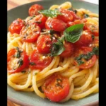 This quick and juicy tomato basil pasta proves that a deeply satisfying, meatless meal doesn’t require hours in the kitchen. The method of sautéing fresh cherry tomatoes creates a vibrant, glossy sauce that’s far superior to jarred versions. For another fantastic way to use ripe tomatoes, try this Roasted Cherry Tomato Sauce Recipe. Give this classic combination a try tonight and let me know how it turned out in the comments!