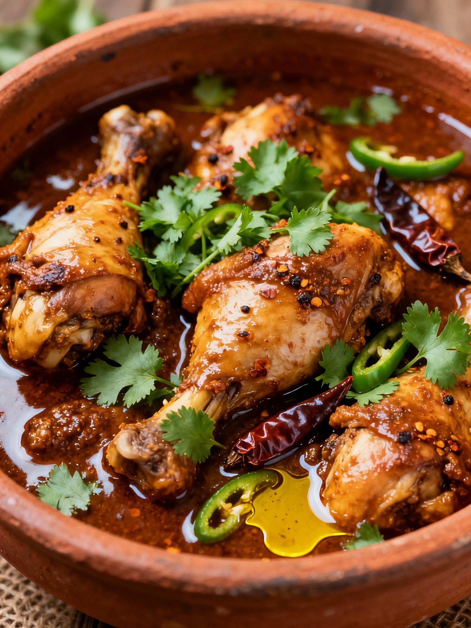 For authentic village flavor, use mustard oil and cook the chicken slowly until oil separates from the gravy. Adjust spice levels according to preference. Cooking in an earthen pot enhances flavor but is optional.