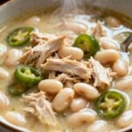 This creamy white chicken chili comes together with simple ingredients that create a rich, comforting bowl with tender chicken, creamy beans, and a subtle kick from green chiles.